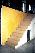 Está cementada y alfombrada en yute e instalada en la parte central.